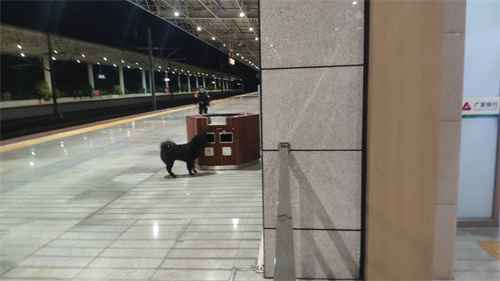 在往衡山西站通往長(zhǎng)沙南站的G432高鐵站臺(tái)方向走的途中,一名高鐵工作人員告訴陳先生,那應(yīng)該是一條警犬。