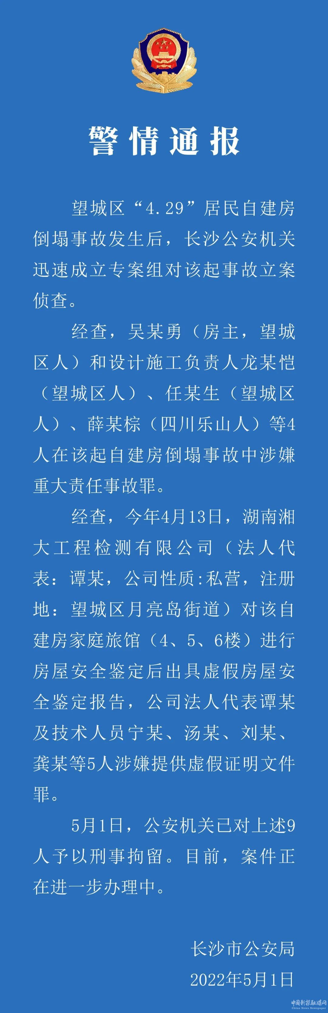 長沙自建房倒塌事故:房主、設(shè)計施工負責(zé)人等9人被刑拘