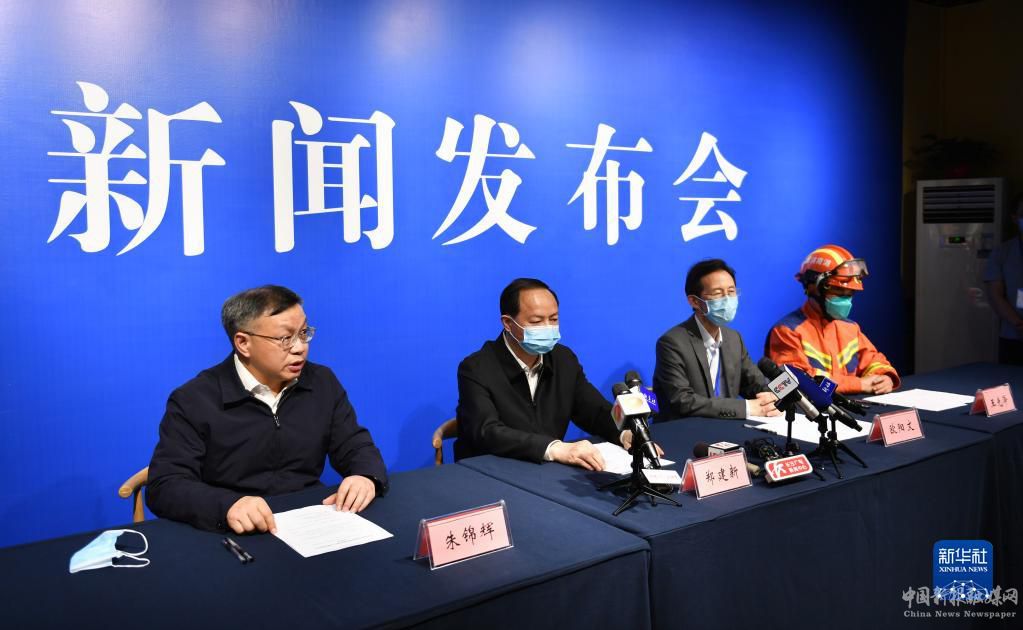 5月5日拍攝的湖南長沙居民自建房倒塌事故新聞發(fā)布會現(xiàn)場。新華社記者 陳振海 攝