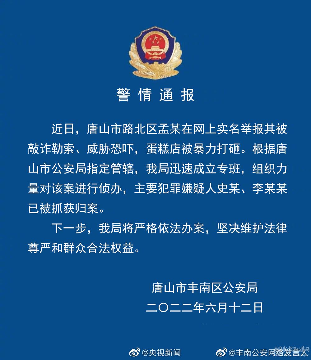 警方通報(bào)唐山蛋糕店被敲詐勒索事件 嫌疑人落網(wǎng)