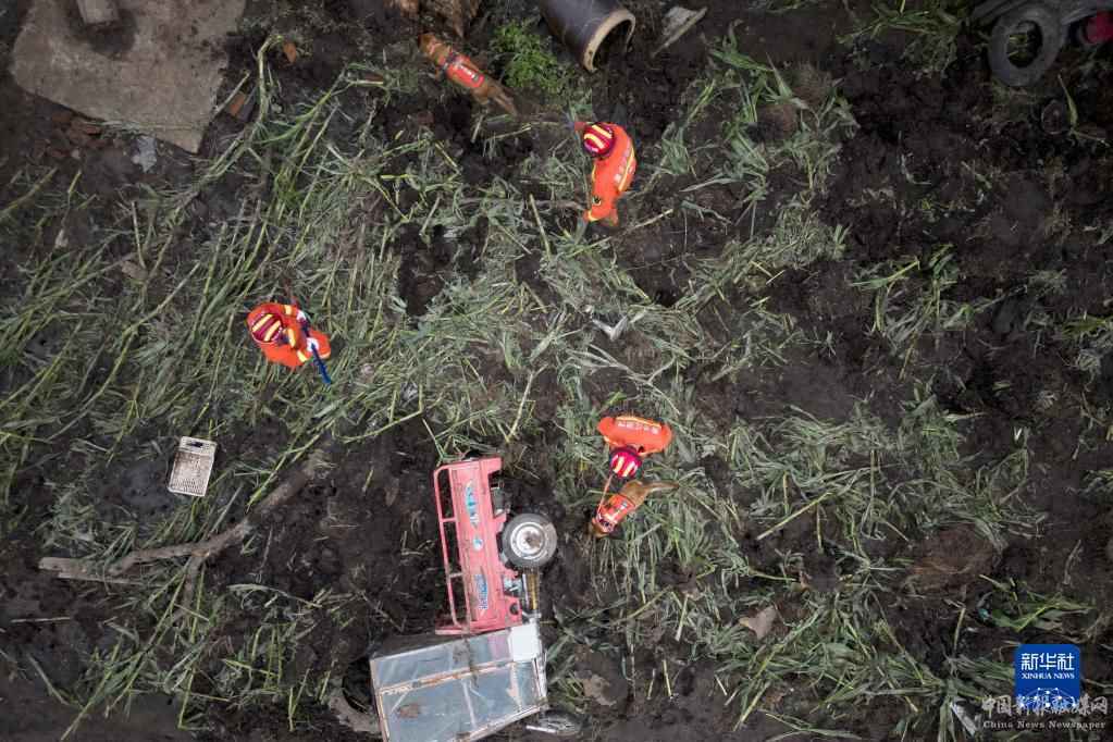 7月13日,齊齊哈爾市消防救援支隊的救援人員在五大連池市朝陽山鎮(zhèn)東風村內(nèi)進行搜救(無人機照片)。