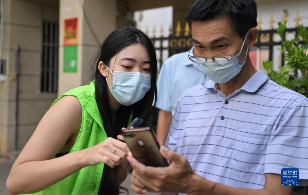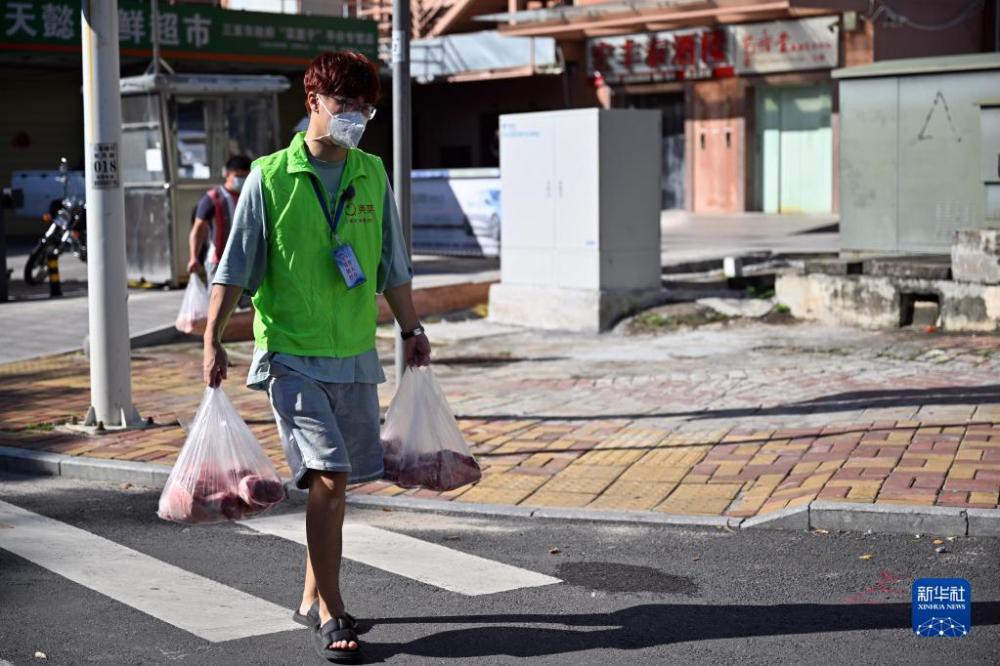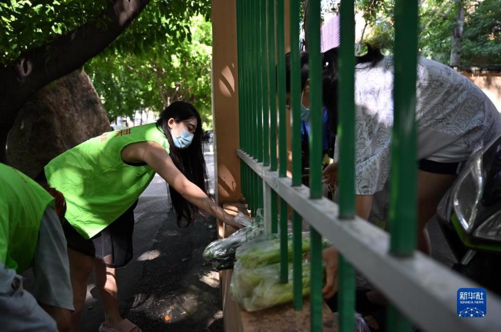8月14日,吳凡力(左二)、張海洋在為市民配送生活物資。新華社記者 郭程 攝 8月14日,吳凡力(左)幫助市民訂菜。新華社記者 郭程 攝