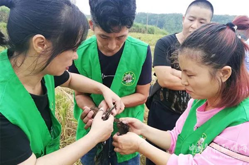 陳福蘭與護鳥營隊員對受傷鳥類進行解網(wǎng)施救