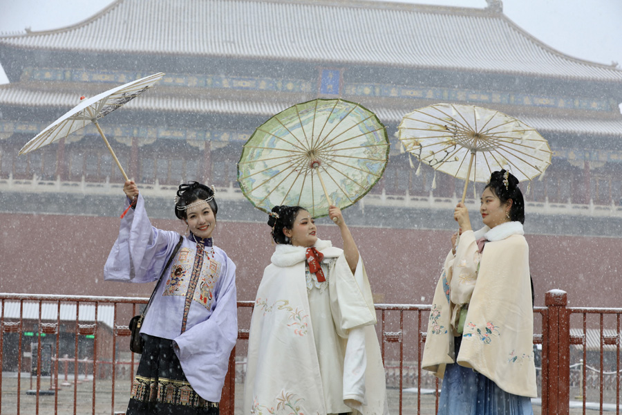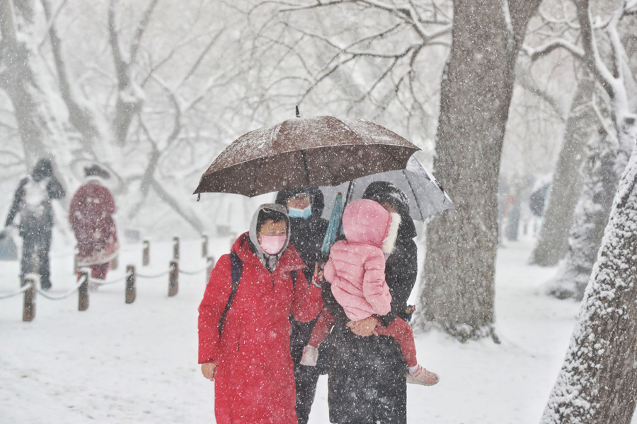 中國(guó)日?qǐng)?bào)北京3月18日電(記者姜東 朱興鑫 王敬)2022年3月18日,北京迎來(lái)降雪天氣,游客冒雪在故宮、頤和園等景點(diǎn)欣賞雪景。當(dāng)日上午,北京市氣象臺(tái)發(fā)布暴雪藍(lán)色預(yù)警。