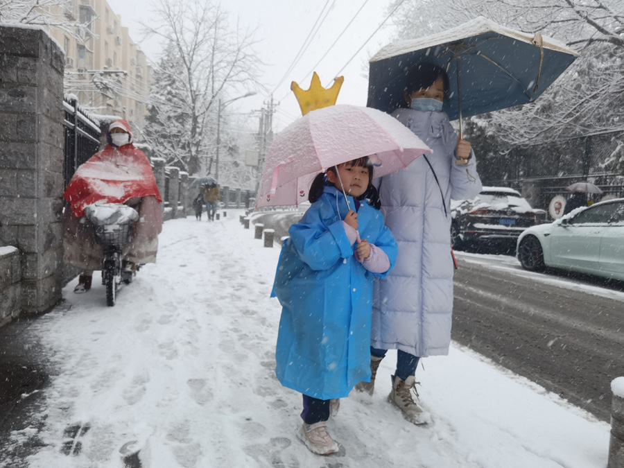 北京街頭,市民冒雪出行。(中國(guó)日?qǐng)?bào)記者 王敬 攝)