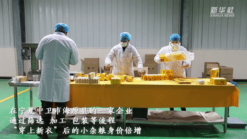 在寧夏中衛(wèi)市海原縣的一家企業(yè),通過(guò)篩選、加工、包裝等流程,“穿上新衣”后的小雜糧身價(jià)倍增。