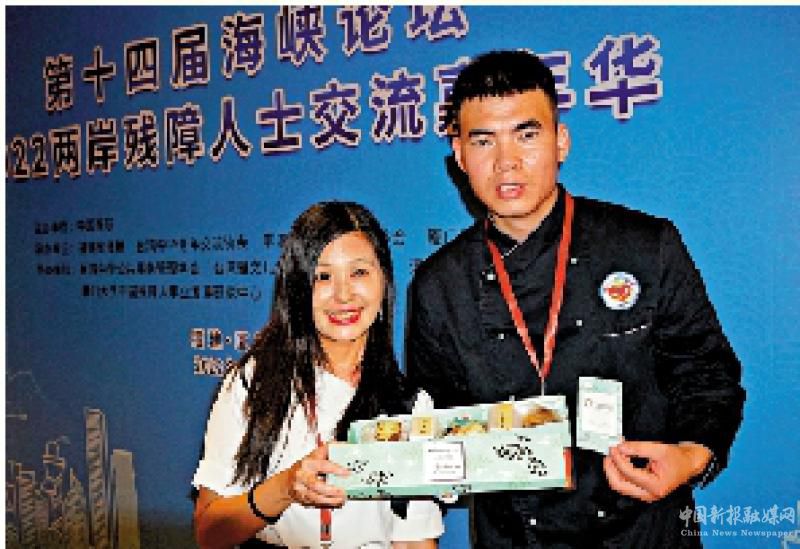 圖:臺(tái)胞李紹嬅和大陸聽障青年趙磊磊請與會(huì)嘉賓品嘗親手制作的西點(diǎn)。\大公報(bào)記者蔣煌基攝