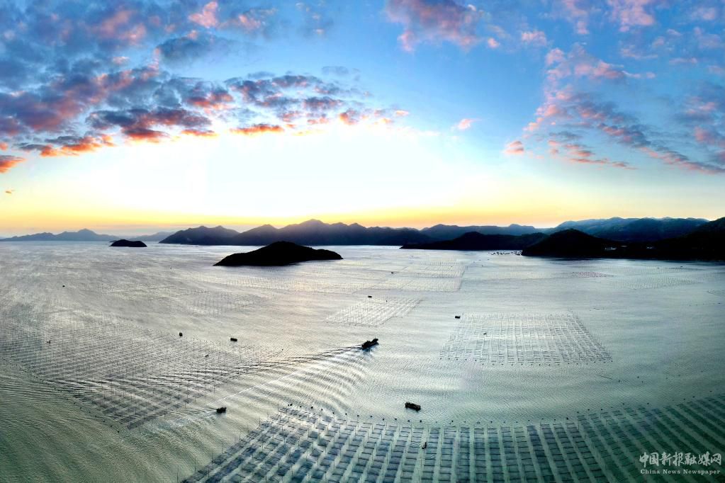 傍晚時分,漁船行駛在霞浦縣三沙鎮(zhèn)海上養(yǎng)殖區(qū)。新華社記者 姜克紅 攝