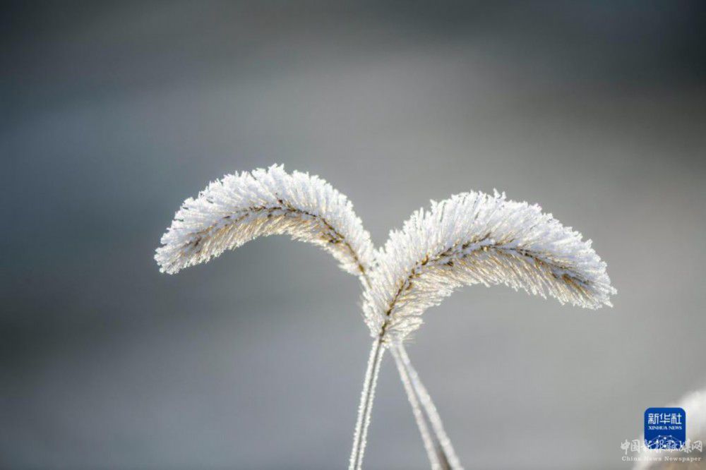 11月17日,在河北省遵化市,狗尾草上結(jié)了冰霜。