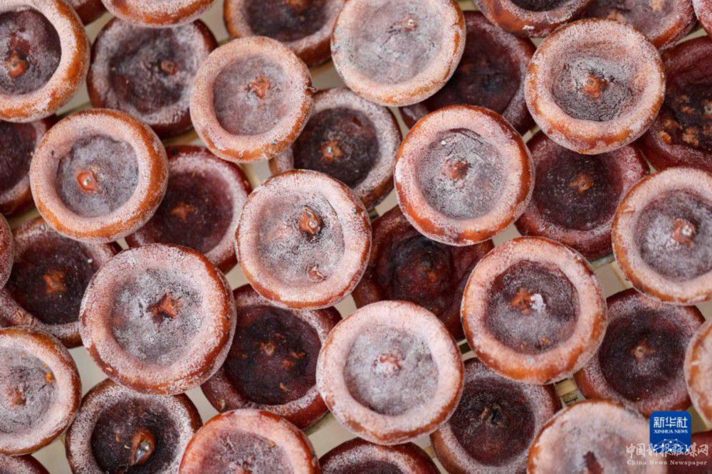 11月16日,在貴州省黔東南苗族侗族自治州岑鞏縣大有鎮(zhèn),柿餅上霜。