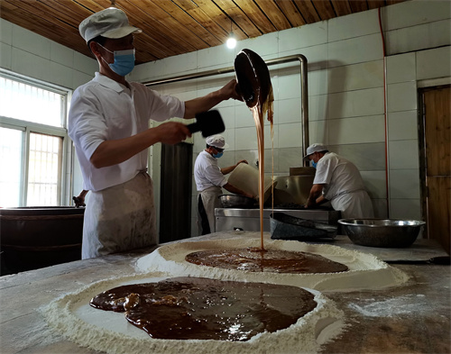 眼下金牛大扁糖又進(jìn)入一年中生產(chǎn)和銷售的旺季,有著千年歷史純手工制作的大扁糖不僅飽含著濃濃的年味,還成為當(dāng)?shù)厝擞肋h(yuǎn)抹不去的鄉(xiāng)愁。        (巢志斌 攝影報(bào)道)