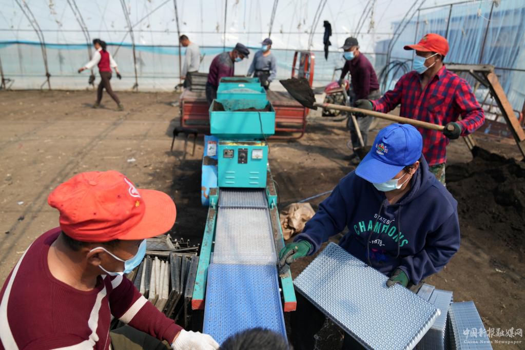 去年,東風(fēng)村蔬菜大棚投入使用。“為保障市民的‘菜籃子’,我們點對點對接超市,他們來這里收購,全程減少人員接觸。”村黨支部副書記孔慶玲說,目前大棚里有豆角、西紅柿、茄子、辣椒等。