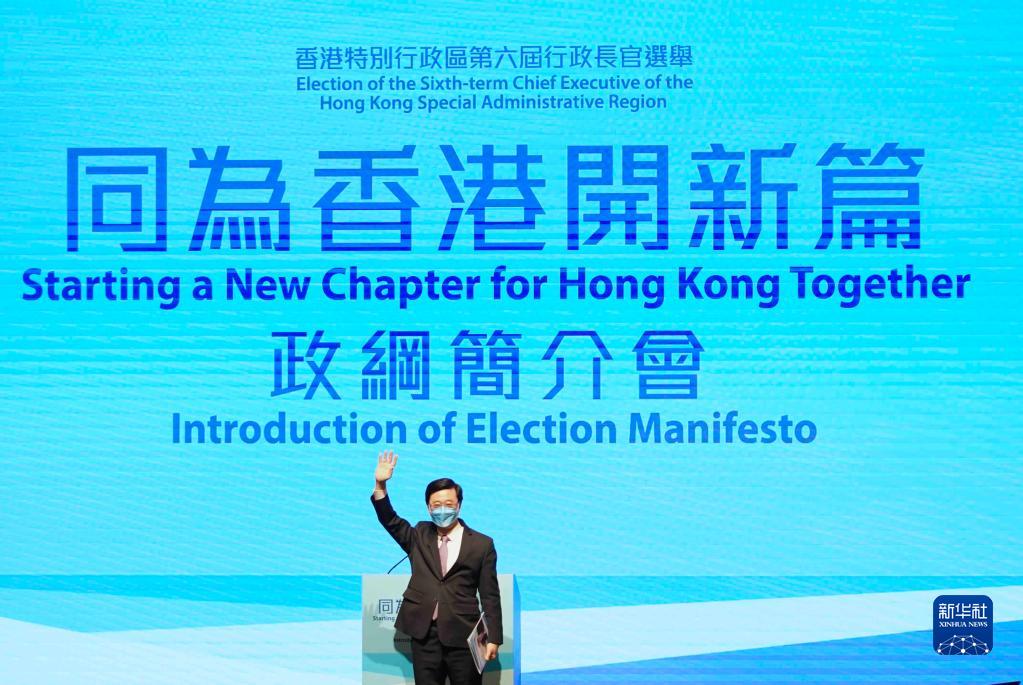 “未來五年,我期望能帶領香港開啟由治及興新篇章。”李家超在競選政綱中提出四大政策綱要,包括:強化政府治理能力,團結一致為民解困;精簡程序多管齊下,提供更多安居之所;全面提升競爭實力,創(chuàng)造持續(xù)發(fā)展空間;同建關愛共融社會,增加青年上流機會。