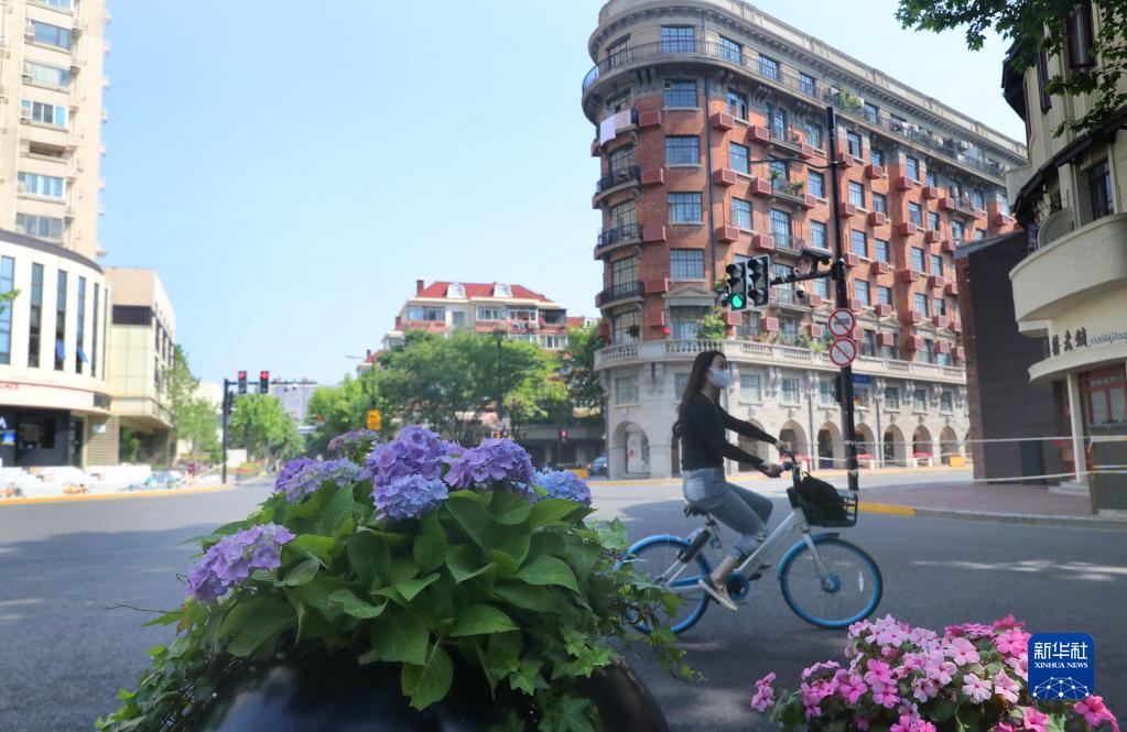 5月17日,市民騎車從武康大樓前經(jīng)過。