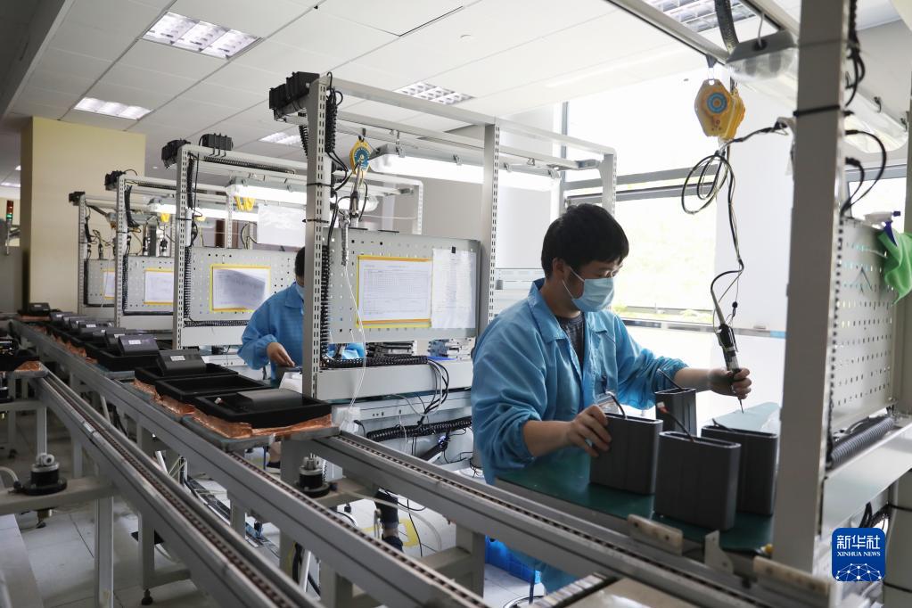 5月17日,在上海青浦北斗西虹橋基地,工人在車間內(nèi)忙碌。
