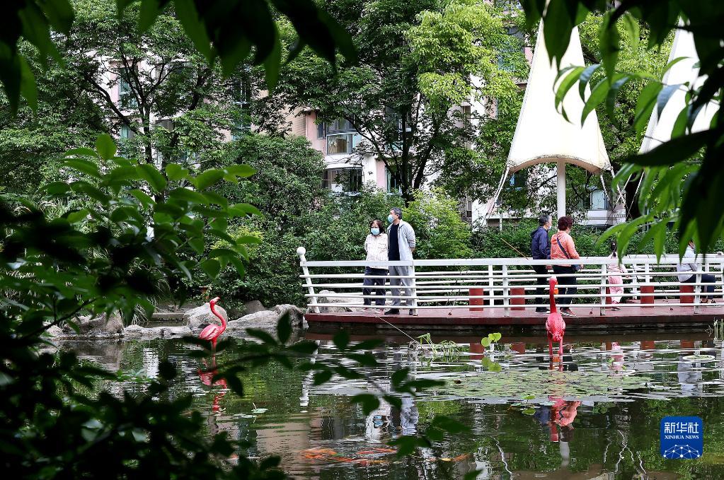 5月17日,市民在上海市普陀區(qū)的一個(gè)居民小區(qū)內(nèi)享受休閑一刻。