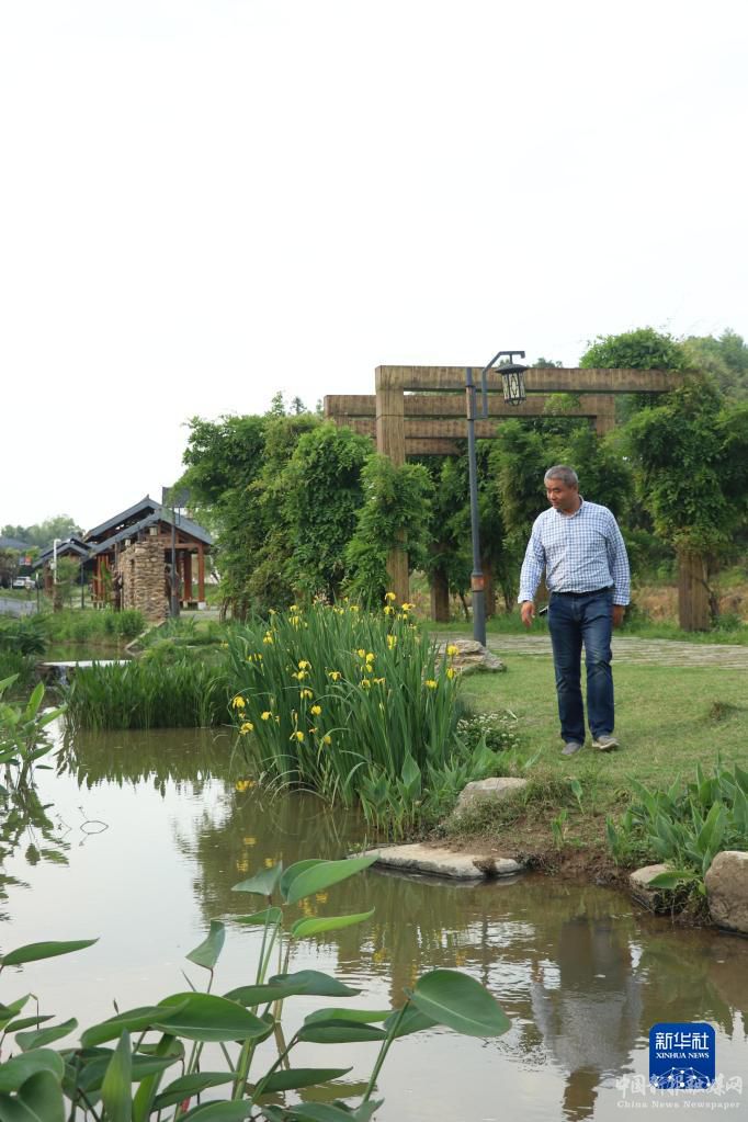 歐陽鵬在清溪村漫步(4月24日攝)。新華社記者 丁春雨 攝