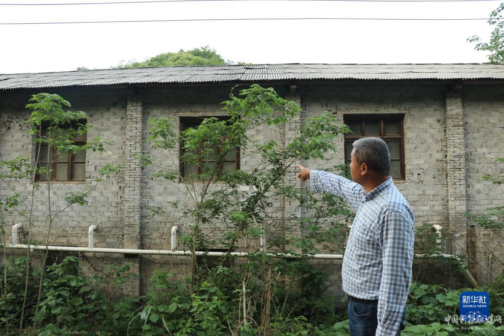歐陽鵬在介紹一處即將被拆除的豬舍(4月24日攝)。新華社記者 丁春雨 攝