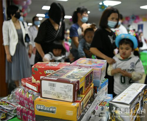 2022年6月1日,在凱里市中醫(yī)醫(yī)院康復(fù)科,醫(yī)院工會(huì)給孩子們購(gòu)買的玩具。(楊仁海 攝)