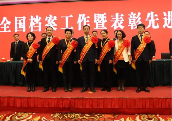 胡遵遠(前排中)在“全國檔案工作暨表彰先進會議”領獎臺上。