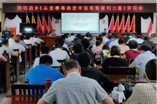 胡遵遠在金寨縣油坊店鄉(xiāng)作紅色宣講報告。