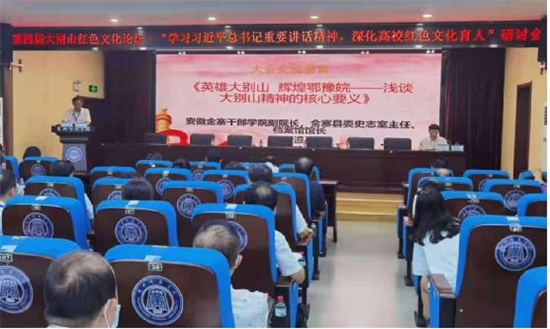 胡遵遠在安徽省直機關大講堂作大別山精神輔導報告。