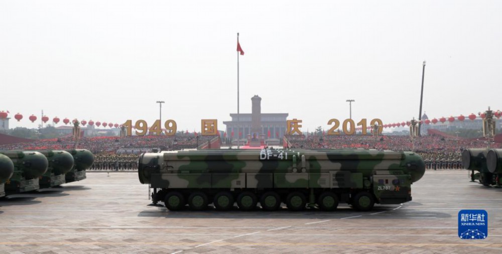 2019年10月1日上午,慶祝中華人民共和國成立70周年大會在北京天安門廣場隆重舉行。這是東風-41核導彈方隊通過天安門廣場。新華社記者 袁滿 攝