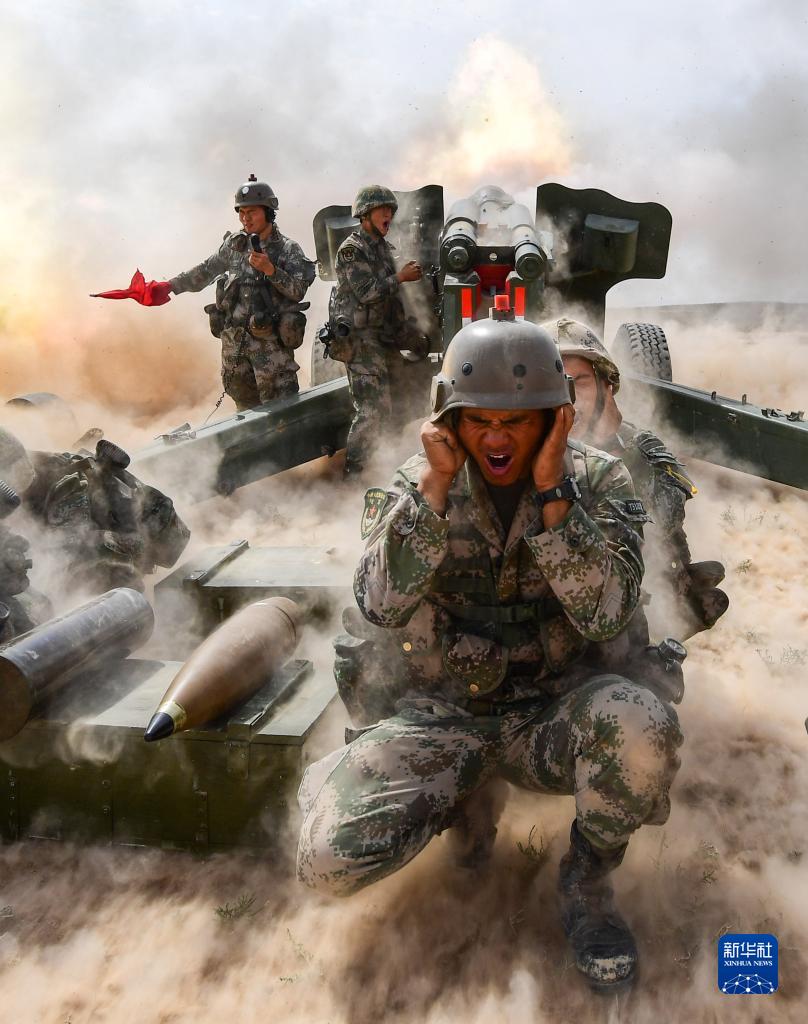 “火力-2017·青銅峽”基地化訓練中,紅軍參演炮兵部隊——第71集團軍某炮兵旅加榴炮進行晝間實彈射擊(2017年9月24日攝)。新華社發(fā)(彭希 攝)