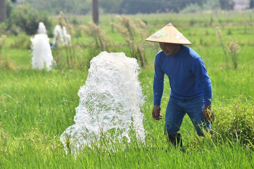 得知農(nóng)戶們的需求,昌邑鄉(xiāng)政府安排20臺電泵,開足馬力將水抽入排灌站,再輸送到稻田邊的水渠里。“20臺電泵24小時不間斷運(yùn)轉(zhuǎn),一小時就能抽5000立方米的水,基本能滿足全鄉(xiāng)1.2萬畝農(nóng)田灌溉需求。”昌邑鄉(xiāng)水務(wù)站站長李經(jīng)港說。