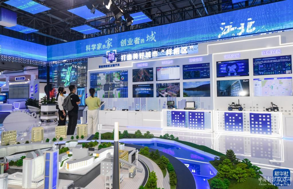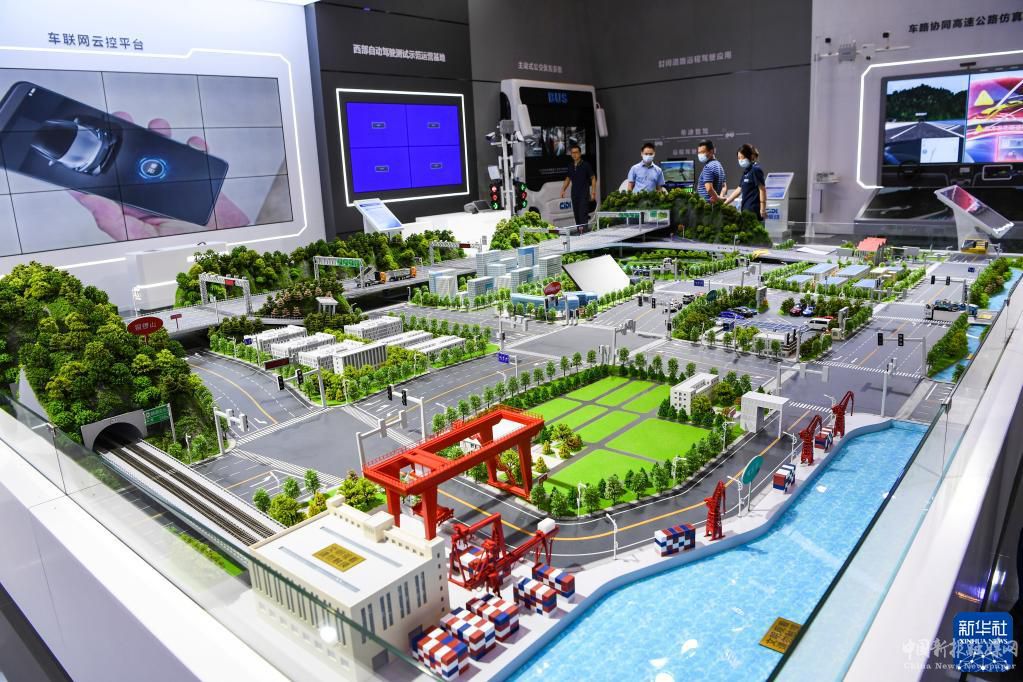8月21日,嘉賓在2022中國國際智能產(chǎn)業(yè)博覽會會場上參觀車路協(xié)同沙盤。