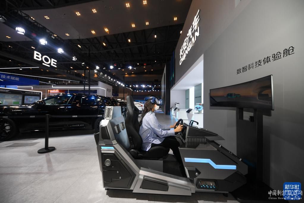 8月21日,媒體記者在2022中國國際智能產(chǎn)業(yè)博覽會長安汽車展廳體驗數(shù)智科技體驗艙。