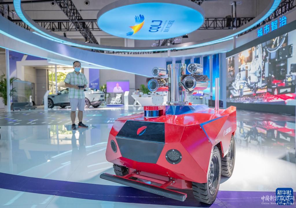 8月21日,媒體記者和嘉賓在2022中國國際智能產(chǎn)業(yè)博覽會會場內(nèi)參觀。