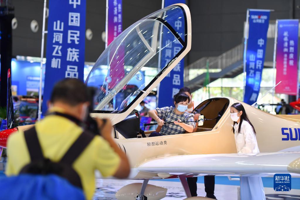 9月1日,在湖南長沙國際會展中心,參觀者在山河航空展位參觀、拍照。