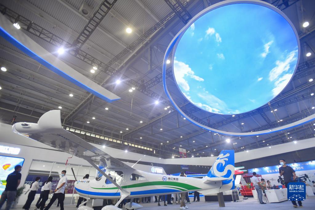 這是9月1日在湖南長沙國際會展中心拍攝的博覽會上的一架輕型運動飛機。
