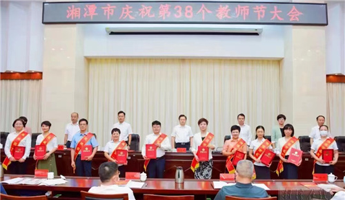 9月8日,湖南省湘潭市舉行慶祝第38個教師節(jié)大會,隆重表彰全市教育戰(zhàn)線先進模范和優(yōu)秀代表。湘潭市委書記劉志仁出席并講話。市委副書記、市長胡賀波主持,市領(lǐng)導(dǎo)劉揚、劉永珍、劉新華、劉俊、趙歡、傅軍、劉良廷以及老同志周韶光等參加。