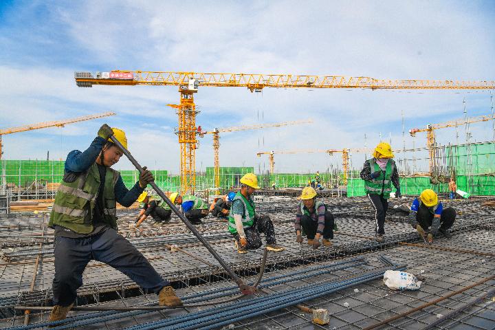 建設(shè)者在雄安創(chuàng)新研究院科技園區(qū)項(xiàng)目建設(shè)現(xiàn)場(chǎng)施工。(任雙歡攝)