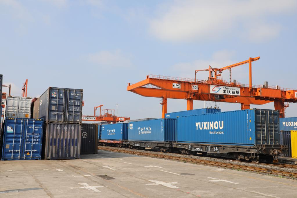 10月1日上午,一列中歐班列(重慶)正在裝載中。(受訪者供圖)