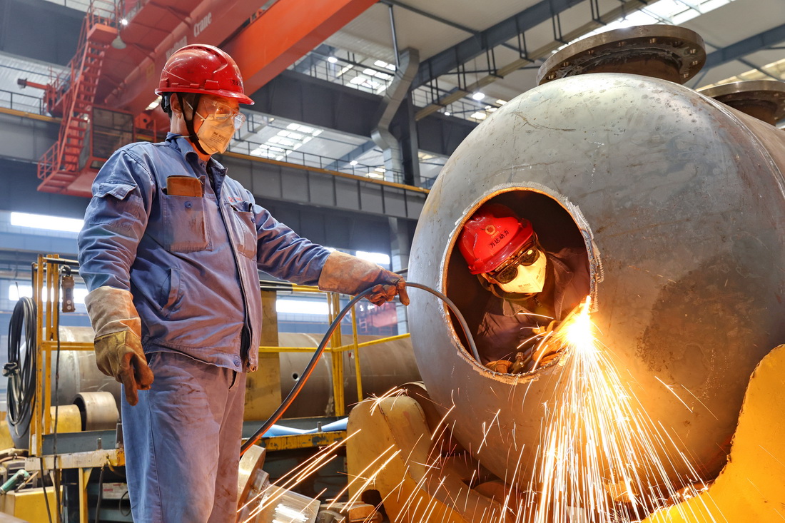 2月6日,江蘇南通萬達(dá)能源動(dòng)力科技有限公司的工人在生產(chǎn)車間趕制出口節(jié)能環(huán)保鍋爐訂單產(chǎn)品。新華社發(fā)(許叢軍 攝)