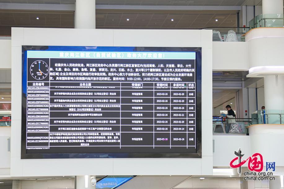 2月17日,重慶兩江新區(qū)政務大廳內(nèi)的大屏上,實時顯示各項受理業(yè)務和辦結(jié)時間。中國網(wǎng)記者 倫曉璇 攝