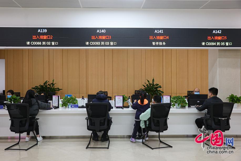 隨著疫情防控政策的優(yōu)化,出入境人數(shù)持續(xù)增長,政務大廳內(nèi)的出入境窗口工作人員也忙碌了起來。中國網(wǎng)記者 倫曉璇 攝
