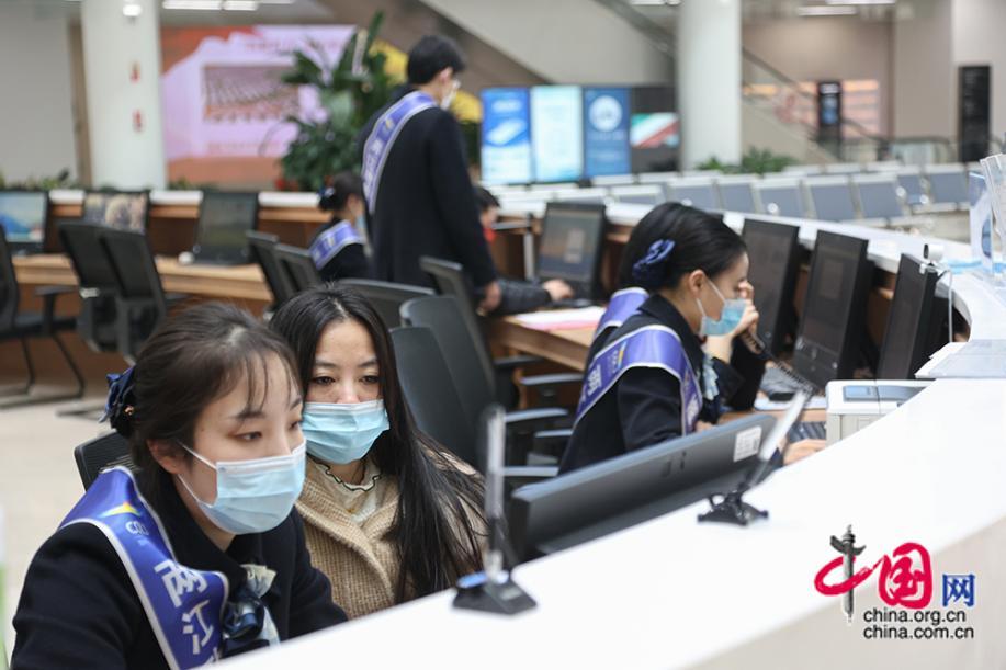 2月17日,在重慶兩江新區(qū)政務大廳,工作人員為辦事群眾辦理各項業(yè)務。中國網(wǎng)記者 倫曉璇 攝