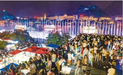 “五一”假期,廣西壯族自治區(qū)柳州市美輪美奐的城市夜景和豐富的夜間經(jīng)濟(jì)消費(fèi)業(yè)態(tài),吸引眾多游客慕名而來。如今,“夜經(jīng)濟(jì)”已經(jīng)成為當(dāng)?shù)乩瓌?dòng)消費(fèi)的“新引擎”,為城市經(jīng)濟(jì)社會(huì)發(fā)展注入新動(dòng)能。圖為游客在柳州市柳江河畔觀看水上音樂噴泉。