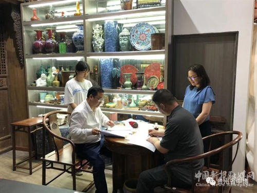 省拍賣公司總經(jīng)理涂衡林(左三)、征集部經(jīng)理金貴林(右三)、拍賣師韋娜(右二)、征集部經(jīng)理付偉(左四)、桐梓辦事處:付軍(左二)、余會強(左一)、張超(右一)