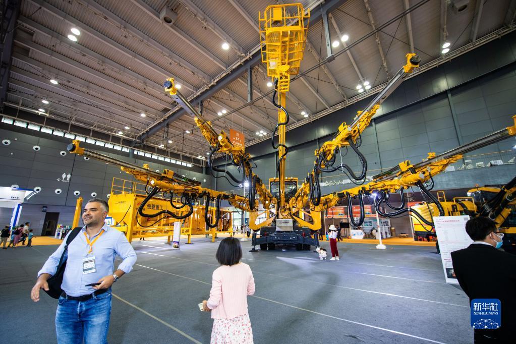 5月15日,在長(zhǎng)沙國(guó)際會(huì)展中心,觀眾在參觀展出的工程機(jī)械設(shè)備。