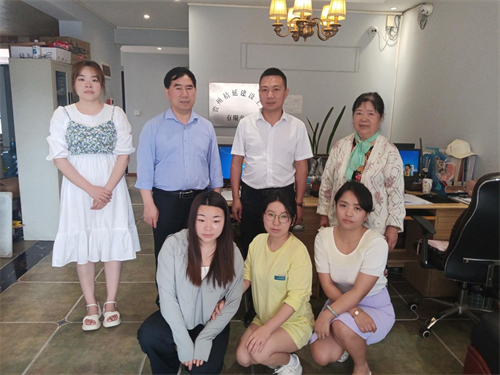 倪總和員工們在一起(第一排從左到右,徐明玉,何燕,梅蘭,第二排左一唐銀婷)