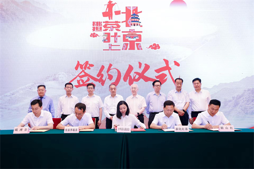 博會上舉行“挑擔茶葉上北京”集結誓師大會;2023年5月28日在長沙橘子洲舉行“挑擔茶葉上北京-湘茶大會”,6月7日在長沙高鐵舉行“挑擔茶葉上北京”出發(fā)儀式、北京西客站北京茶界舉行歡迎“挑擔茶葉上北京”儀式,6月9日在“2023北京國際茶業(yè)展”上展示展銷,舉辦沅陵碣灘茶專場推介會、湘茶品牌集體推介會,6月15日,在北京新發(fā)地全國特優(yōu)農(nóng)產(chǎn)品展銷中心舉行“挑擔茶葉上北京-五彩湘茶(湖南紅茶)產(chǎn)銷對接會”,到6月16日在人民大會堂新聞發(fā)布廳舉行“挑擔茶葉上北京-五彩湘茶匯報會”,在京期間還考察、對接了全國供銷總社832平臺、馬連道茶葉市場、河北市場等,促進湘茶品牌產(chǎn)品落地、進入北京及河北等市場。