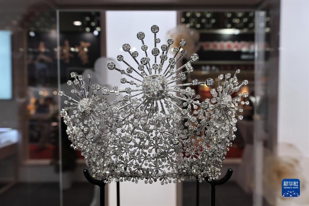 6月22日在2023上海國(guó)際珠寶首飾展覽會(huì)上拍攝的鉆石皇冠“永恒之星”。