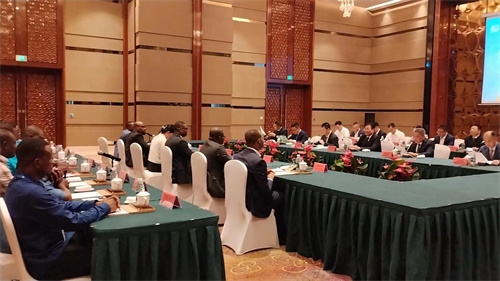 7月1日,參加第三屆中國—非洲經(jīng)貿(mào)博覽會的貝寧代表團來湖南省邵陽市考察。邵陽市委副書記、市長華學(xué)健與貝寧經(jīng)濟與財政部經(jīng)濟財政合作事務(wù)國務(wù)部長辦公室研究室專員阿德耶·法基·卡莫德領(lǐng)銜的代表團一行座談。