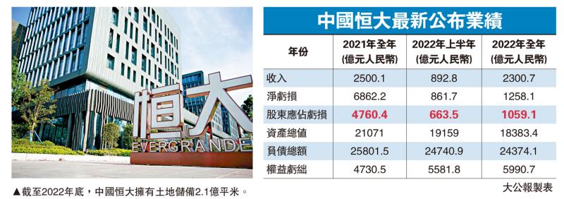近年陷入債務(wù)危機(jī)的中國恒大(03333)昨日一口氣公布2021年全年、2022年上半年及全年業(yè)績。2021年收入為2500.1億元(人民幣,下同),按年大跌50.7%,2022年收入再減少8%至2300.7億元;利潤方面,2021年由盈轉(zhuǎn)虧,股東應(yīng)占虧損4760.4億元,2022年再蝕1059.1億元,按年已大幅收窄78%,兩年合計(jì)累積虧損達(dá)5819.5億元(約6340億港元)。負(fù)債水平方別,分別較2020年上漲32%和25%,未有明顯改善。集團(tuán)繼續(xù)停牌,再有兩月便有除牌風(fēng)險(xiǎn)。