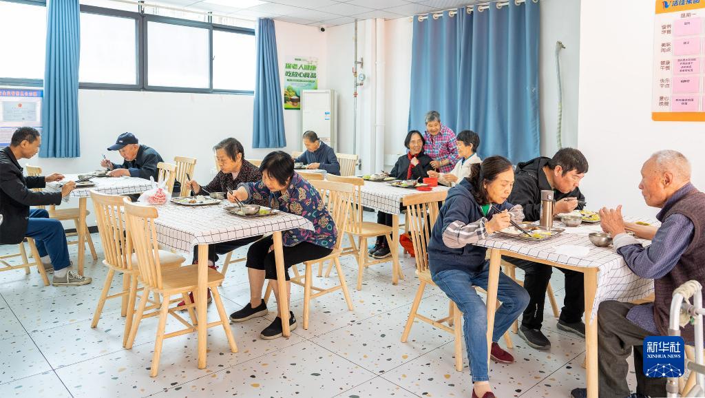 5月9日,在江西省南昌市青云譜區(qū)三家店街道南蓮社區(qū)嵌入式養(yǎng)老院,老人們正在用餐室吃飯。